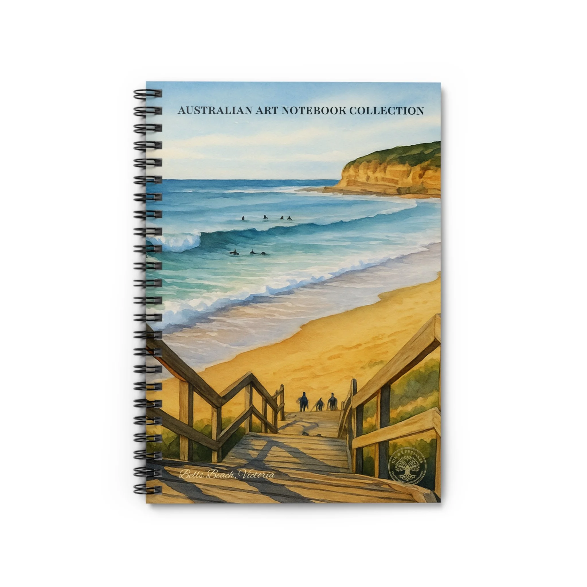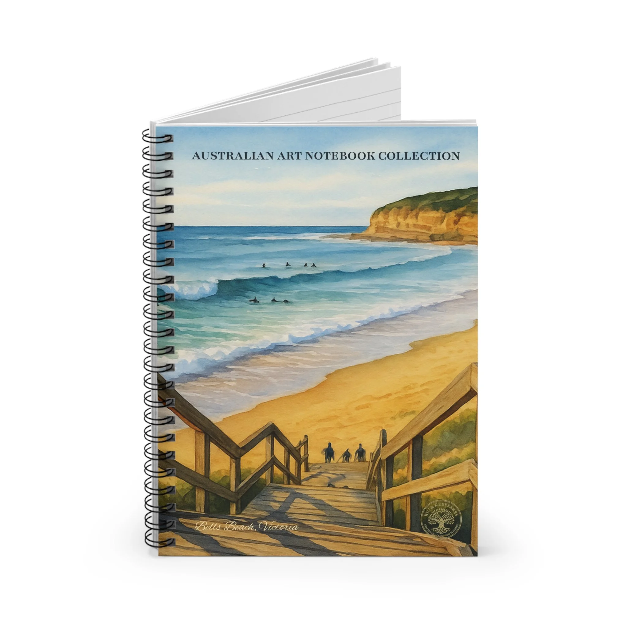 Spiral Notebook A5 - Bells Beach, Beach Escapes, Australia Retro Travel Series